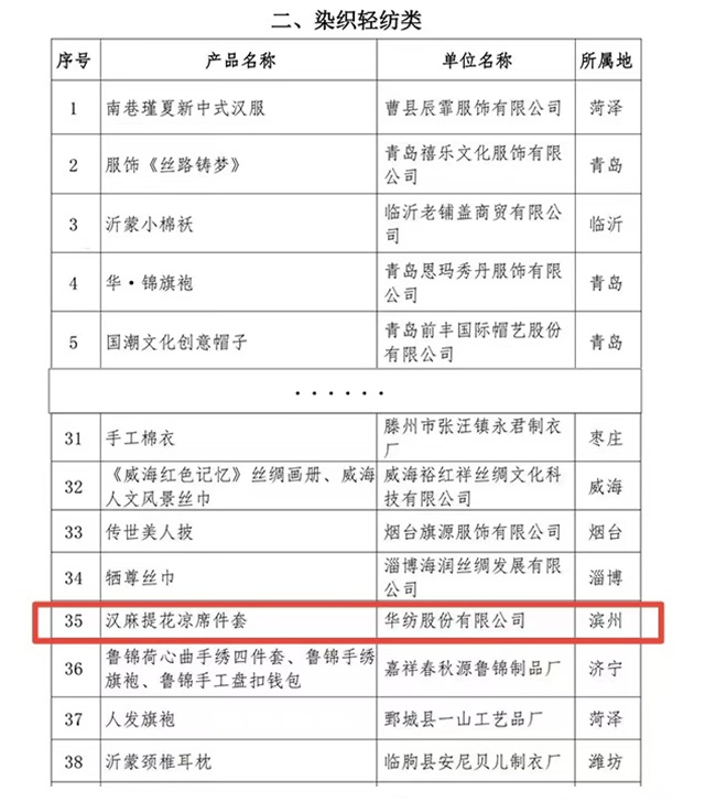 “山東手造”是省委、省政府發(fā)揮文化資源豐厚、傳統(tǒng)工藝品類齊全的優(yōu)勢,創(chuàng)新打造的文化創(chuàng)意區(qū)域公共品牌,是塑造山東文化創(chuàng)意產(chǎn)業(yè)發(fā)展新優(yōu)勢的重要抓手。按照省委、省政府關(guān)于推進“山東手造”工程的部署安排,本次“山東手造·優(yōu)選100”遴選活動共分為傳統(tǒng)美術(shù)類、染織輕紡類、文玩用品類、刻塑鑄造類、木作家具類、傳統(tǒng)食品類六大類。其中,公司家紡床品產(chǎn)品——漢麻提花涼席件套作為染織輕紡類,成功入選2023“山東手造·優(yōu)選100”名單,這無疑是對公司產(chǎn)品品質(zhì)與工藝的高度認(rèn)可。